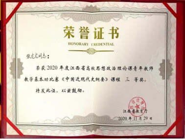11月28日,由江西省教育厅主办的2020年度江西省高校思想政治理论课青年教师教学基本功比赛在东华理工大学举行,开云kaiyun官方网站选派了4位青年教师参赛,余坦明荣获《马克思主义基本原理概论》课程组二等奖、张龙龙获《中国近现代史纲要》课程组三等奖。