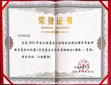 我校开云kaiyun官方网站教师获2020年度江西省高校思政课青年教师教学基本功比赛二等奖