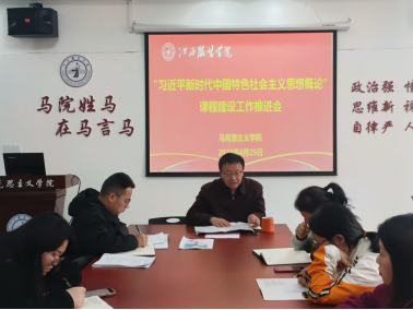 在会上,肖杰院长围绕近期看课听课备课及思政课课程教学情况与大家进行交流,对当前习近平新时代中国特色社会主义思想概论课程备课及教学情况提出意见建议。一是本学期面向2021级本科生全面开设了习近平新时代中国特色社会主义思想概论课程,大家要始终准确把握此课程建设的目的和意义,大家务必要熟透课件、把准重点难点、提高教学效果、实现育人目标;二是要坚持每周集体备课,要注重课程长期建设、不断打磨积累,通过一次次的课程教学检验整体效果,注重加强教学规范性;三是要坚持马克思主义立场观点方法,要讲透课程的道理学理哲理,要打开思路、守正创新,扎实推进课程建设;四是要始终把握课程教学纪律,加强教学的规范性管理,发挥好老、中、青教师的作用,协同发力,合力提高课程效果。