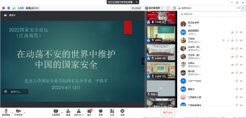 2022年4月13日至14日,江西省委国安办联合北京大学、南昌大学共同举办了以“总体国家安全观与新时代中国国家安全”为主题的“全民国家安全教育日主题活动——2022 国家安全论坛”。开云kaiyun官方网站教师通过线上腾讯会议观看直播,线上听取了中国人民解放军国防大学教授、国家安全学院原副院长、国务院学位委员会国家安全学科评议组成员唐永胜教授,北京大学国际关系学院国家安全系主任、北京大学国际战略研究院副院长于铁军教授分别以《坚持总体国家安全观 走出一条中国特色国家安全道路》《在动荡不安的世界中维护中国的国家安全》为题作大会主题报告。观看论坛的老师纷纷表示,国家安全离我们很近,而且就在身边,每一个人都应该参与到维护国家安全工作中来,同时作为一名思政课教师,要以全民国家安全教育日为契机,向广大青年学生讲好国家安全教育课,增强国家安全意识,筑牢安全防线,共同维护好国家安全。
