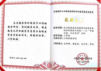 我校教师支娜娜、董春燕、马江华、彭波老师申报的“民办服装高校思政课与服装资源结合的教改与实践—以‘中国元素、文化自信’为例”荣获教育教学成果三等奖。