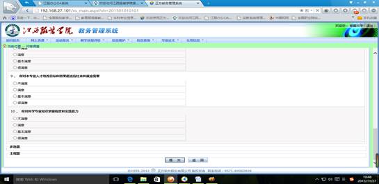 【专业满意度评价界面】——所有选项都完成后,点击“提交”按钮,一旦提交,不可修改。