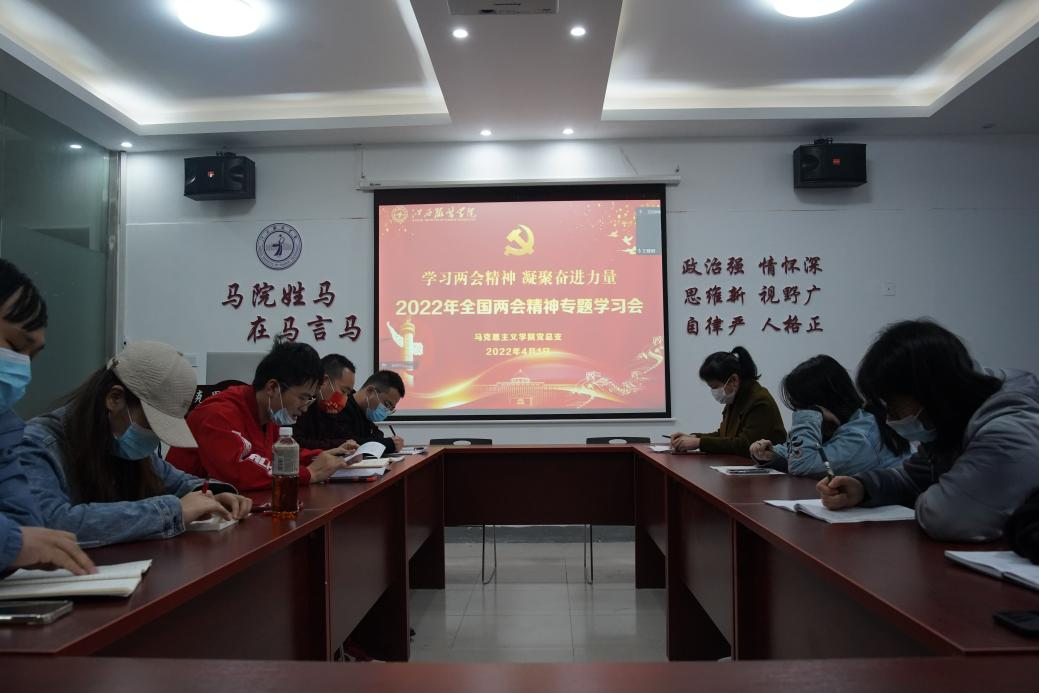 为深入学习贯彻2022年全国“两会”精神,引导我院全体人员深刻领会、准确把握“两会”精神实质和丰富内涵,切实增强政治责任感和历史使命感,同时推动“两会”精神及时、全面、专业地融入思政课教学中,更好地发挥思政课作为落实立德树人根本任务的关键课程。4月初学院党总支通过专题学习、交叉互动和集体备课等形式开展“两会”精神学习研讨活动。