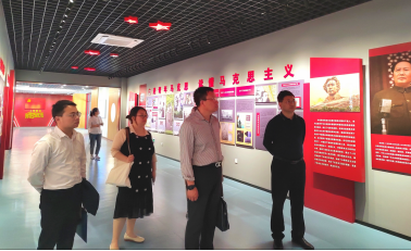 首先,熊春泉院长等带领大家参观江西科技学院大学生思想政治教育基地,详细介绍了基地建设及开放使用情况。该基地分为序厅、党史厅、江西红色文化厅、复兴之路厅、校史厅五个部分,各展厅展出内容以图片、文字为主,展出形式以平面、多媒体和实物模型相结合,主要展示了中国共产党的发展历程和在江西的发展历史,改革开放以来中国的“沧海巨变”,党的十八大以来取得的历史性成就,以及该校发展历程和党建思政工作成就等。该基地积极运用于党员发展及教育培养、思想政治理论课实践教学及新生入学教育等活动,在红色文化育人、加强思想引领方面取得了明显成效。熊院长介绍当前江西科技学院正在建设的还有雷锋教育馆、宪法教育馆,预计于下半年投入使用,将成为该校展示形象、服务社会、“大思政课”育人格局的重要阵地和育人平台。