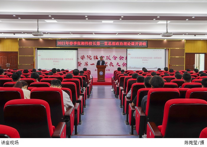 本网讯(校报记者 罗骏峰/卢喜乐)3月15日上午,张湘伟校长在振华楼学术报告厅开讲思政第一课,信息技术学院学生参加。