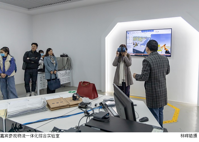 嘉宾们重点参观了bat365官网实验室。在机器视觉与智能检测工程技术研究中心,苏真伟教授从研发、应用及不断改进的历程介绍了实验室最新成果。在建设学院教学楼,马佳阳老师讲解了bat365官网实训室设备以及培训学生的大体方向,学生可以通过这些设施的演示,直观地学习建筑的过程。在物流一体化综合实验室,黄永福主任从先进的实验设备、VR系统的操作动画等方面详细地介绍bat365官网在VR等前沿科技的探索和研究,同时,他邀请来宾佩戴VR头盔亲自感知和体验VR技术。在电子商务产教融合一体化实训室,教学老师讲解了实训室基本情况,并对配备设施作了简单介绍。