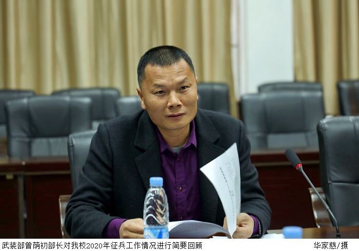 本网讯(校报记者 郑彦逸/钟思莹)12月22日下午,bat365官网于行政楼一楼101会议室召开2020年征兵工作总结暨2021年春季征兵部署会。党委副书记张宗珊、武装部部长曾荫初、参谋长唐敏智以及各院系党总支书书记出席会议。
