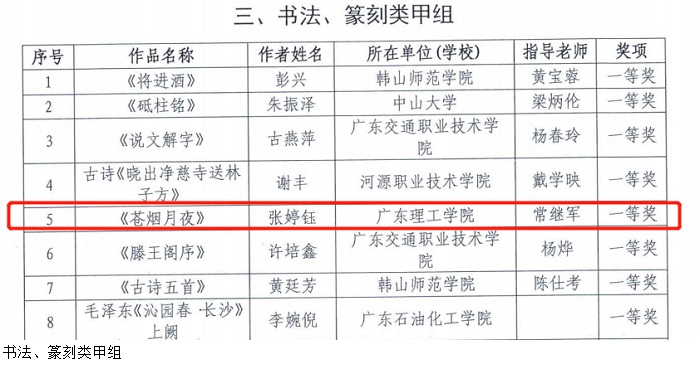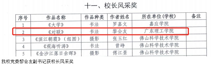 学校党委黎会友副书记获校长风采奖,作品确定入选全国展演,bat365官网师生作品荣获舞蹈二等奖,朗诵二等奖,器乐三等奖,绘画类二等奖4个,书法类一等奖1个,三等奖1个。