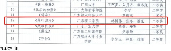 本网讯(校团委)根据《教育部关于举办全国第六届大学生艺术展演活动的通知》(教体艺函〔2019〕5号)及我省工作安排,广东省第六届 大学生艺术展演活动于2019年12月始,历经一年,通过申报、复评、终评和公示无异议后,评选出广东省第六届大学生艺术展演活动获奖名单及报送全国第六届大学生艺术展演活动作品名单。