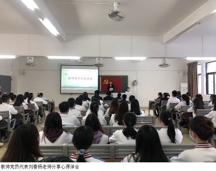 教师党员代表刘春杨老师发表讲话,预备党员们应把入党誓词作为自己终身的追求、修养与实践,恪守在党旗下的诺言,不断开拓创新、锐意进取,为实现中华民族伟大复兴中国梦贡献自己的力量。