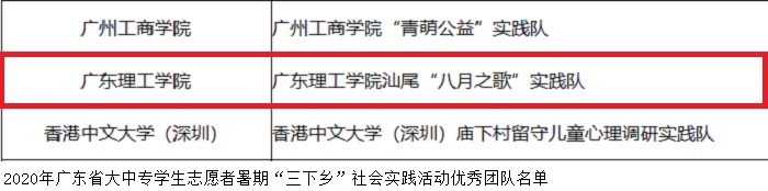 本网讯(校团委)近日,省委宣传部、省文明办、团省委、省教育厅、省学联公布了2020年度省“三下乡”社会实践活动优秀单位、团队和个人的名单。bat365官网荣获2020年度省“三下乡”社会实践活动优秀单位称号,“八月之歌”实践队荣获2020年度省“三下乡”社会实践活动优秀团队称号,林博伟老师、陈思媛、邱悦、黄科然同学荣获2020年度省“三下乡”社会实践活动优秀个人称号。