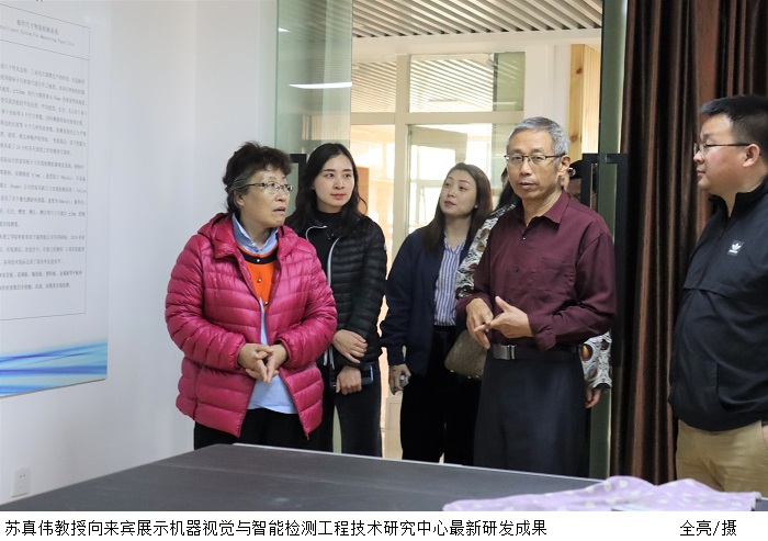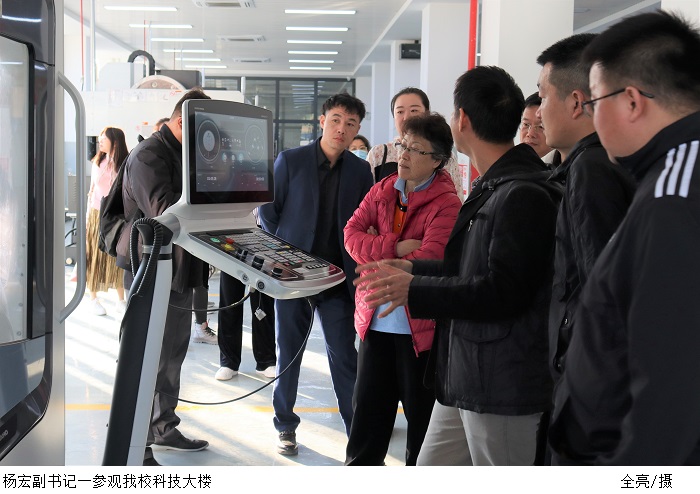 杨宏副书记一行先后到bat365官网篮球馆、机械制造生产性实践基地、智能制造研究院、游泳馆、机器视觉与智能检测工程技术研究中心进行参观。机器视觉与智能检测工程技术中心主任苏真伟教授向来宾介绍了研究中心的科研设备、重点研发项目以及展示了最新的研发成果。