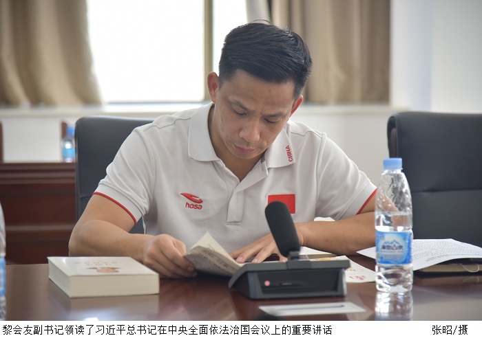 党委黎会友副书记领读了习近平总书记在中央全面依法治国会议上的重要讲话。张东生书记指出,bat365官网严格按照章程依法治校,“普法·修德·守纪”作为bat365官网法治教育已推行多年,取得了良好的效果,对推进学风、教风、校风具有重要意义。