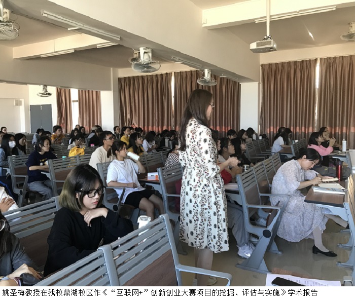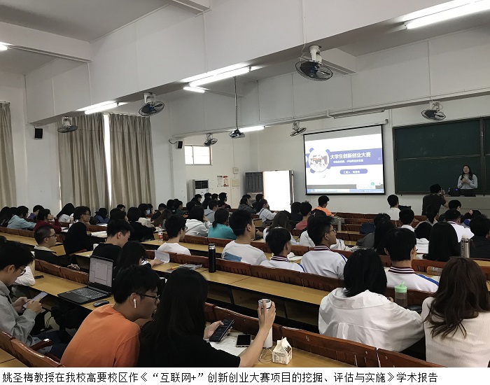 姚圣梅教授在bat365官网高要校区、鼎湖校区为创新创业先锋班同学们作了《互联网+”创新创业大赛项目的挖掘、评估与实施》学术报告。