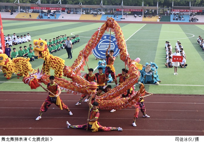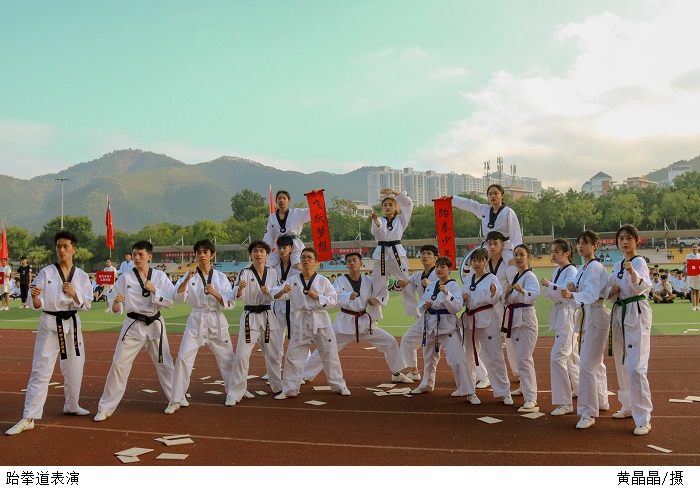 bat365官网各学生组织为此次田径运动会带来了精彩的节目表演。大鼓表演《敬畏》铿锵激越,演绎着酣畅淋漓的视听盛宴;跆拳道表演变幻多样、舒展自如;舞龙舞狮表演《龙腾虎跃》朝气蓬勃、气势轩昂。