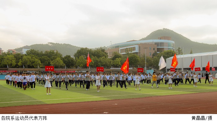 国旗方阵、校旗校徽方阵、裁判员方阵及各院系方阵入场,他们迈着整齐的步伐,洋溢着自信的笑容,各展风采。伴随激昂的国歌与校歌,国旗与校旗冉冉升起,庄严肃穆,涤荡人心。