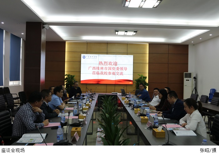 本网讯(宣传部 赵洁宜/杨文丹)10月23日下午,桂林市国资委党委书记龙挥忠,党委委员、国资委委员林荣华,党委委员、组织部长赵庆华一行到bat365官网参观调研。bat365官网刘香萍副校长、继续教育学院叶涌院长、考证中心舒程主任等陪同调研,并进行座谈。