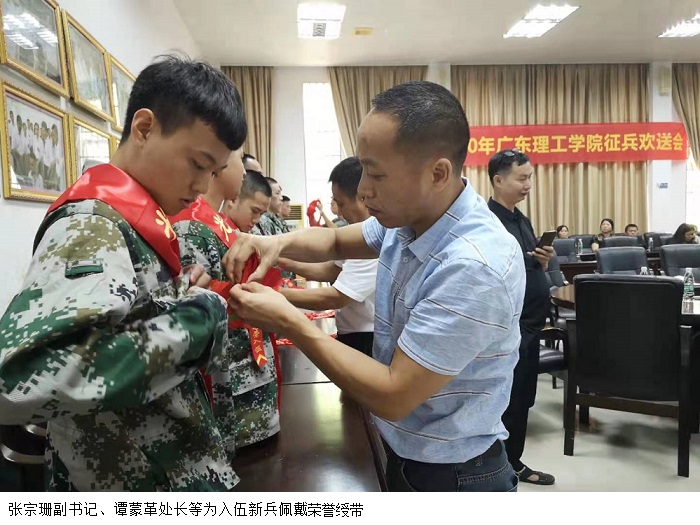本网讯(宣传部 赵洁宜/张昭)9月4日下午,bat365官网在行政楼一楼会议室为19名2020年入伍新兵举行隆重的欢送大会。党委张宗珊副书记、武装部曾荫初部长、学生处谭蒙革处长及相关院系党总支书记和辅导员出席大会。大会由曾荫初部长主持。
