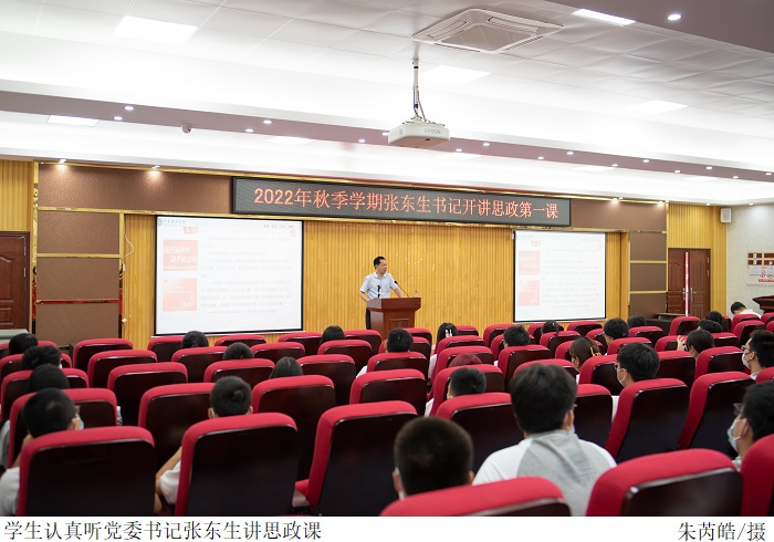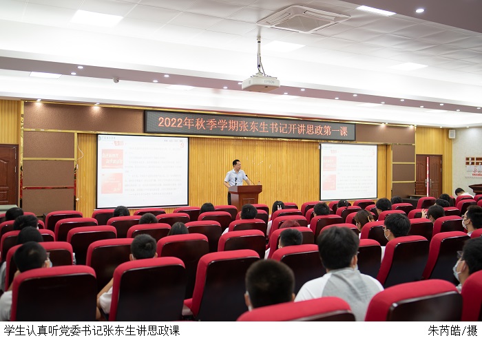 本网讯(新闻中心 洪欣烁/冼芯宇)为引导学生树立正确的人生观和价值观,帮助学生更好地在大学里实现自我价值,9月15日上午,党委书记张东生在高要校区42栋学术报告厅开讲主题为“在担当中历练,在尽责中成长”新学期思政第一课。2022级艺术系与智能制造学院部分学生到场聆听。讲座由马克思主义学院教师宋林霞主持。