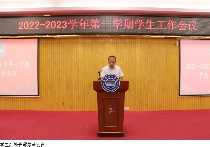 谭蒙革、钟兆天对近期各项学生工作情况进行总结,对存在的问题提出指导意见,并就新学期安全教育、资助育人、心理育人、公寓建设等五方面工作作出安排。