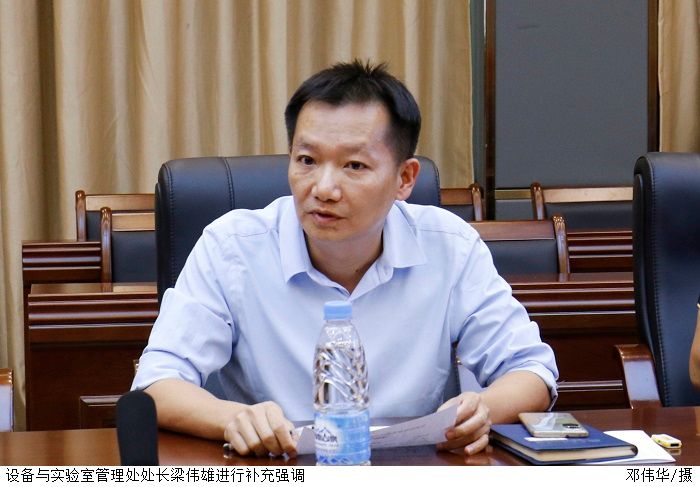设备与实验室管理处处长梁伟雄进行补充强调,各实验室需做到设备铭牌、放置地址与现处地址一一对应,实验室负责人需提前做好评估前部门访谈准备,同时实验室管理平台已基本完成,后期将对负责人进行统一培训。
