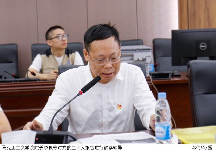马克思主义学院院长李佩琼对党的二十大报告进行解读辅导。他强调,科学谋划未来五年乃至更长时期党和国家事业发展的目标任务和大体方针,事关党和国家事业继往开来。党的二十大报告是我国开启新征程的纲领性文件和行动指南。报告总结历史成就,坚定发展自信;坚定指导思想,开辟理论环境;明确使命任务,提出奋斗目标;统筹谋篇布局,推动全面发展;勇于自我革命,坚定政治保证。作为高等教育工作者,要始终落实好党的教育方针,坚持以立德树人为目标,顺应时代发展要求,为国家培养创新人才,助力中华民族伟大复兴。