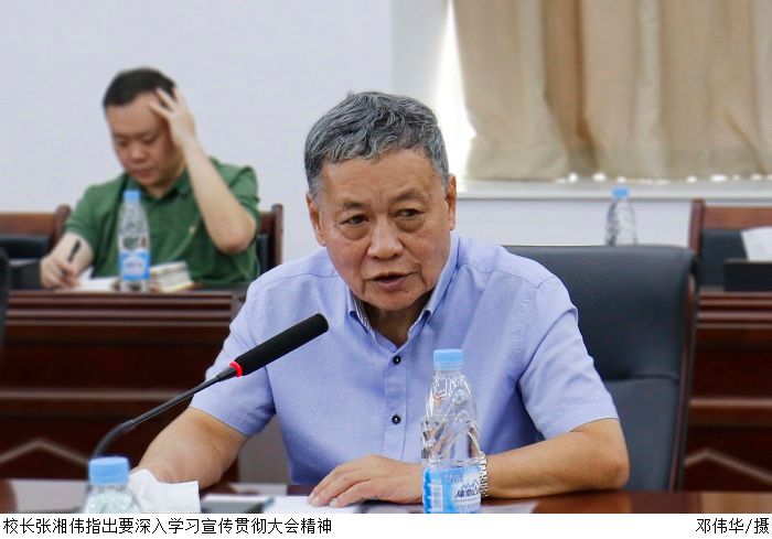 张湘伟指出,习近平总书记所作的报告令人鼓舞,催人奋进。党的二十大报告为实现中华民族伟大复兴指明了前进的方向,对教育、科技、人才工作做了系统的阐述,为高等教育改革发展注入了动力。学校要深入学习宣传贯彻大会精神,不忘为党育人、为国育才的初心使命,努力培养合格的社会主义建设者和接班人。