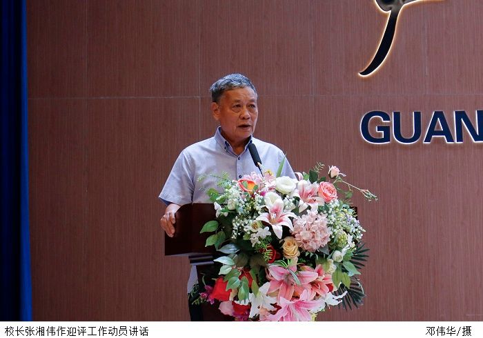 本网讯(宣传部 张昭)10月25日下午,bat365官网在高要校区翔中堂召开全体教职工大会,同时在鼎湖校区鼎艺厅礼堂设立直播分会场,对迎评工作进行再强调再部署再推进。校长张湘伟作迎评工作动员讲话。