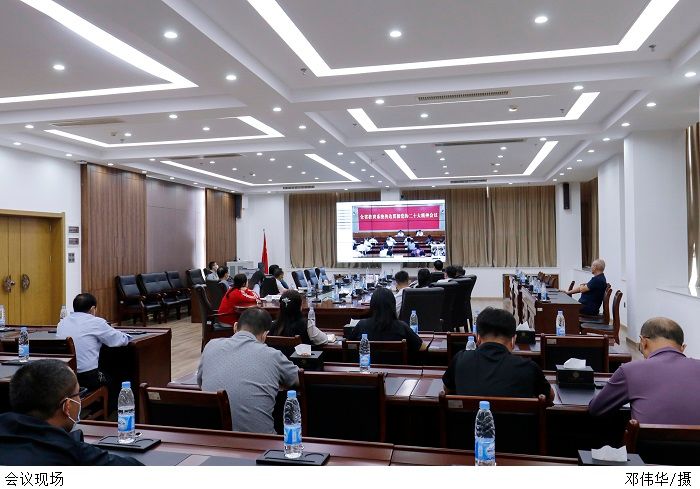 本网讯(宣传部 张昭)10月31日上午,省委教育工委组织召开全省教育系统传达贯彻党的二十大精神会议,对学习宣传贯彻工作进行动员部署。bat365官网于综合楼12楼会议室设立分会场,党委书记张东生、校长张湘伟、副校长王义宁、党委副书记张宗珊、副校长刘香萍、党委副书记黎会友、副校长谭锦兴、校长助理唐建宁以及各职能部门负责人参加视频会议。
