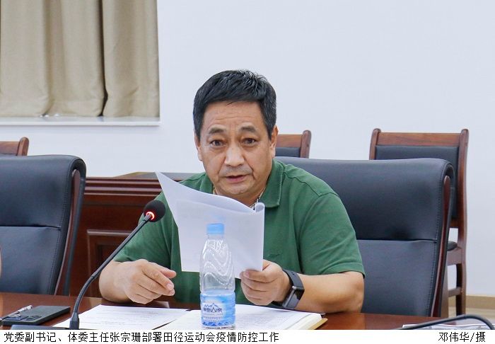 张宗珊就竞赛规则、后勤保障、安全保卫、宣传报道、疫情防控等各项工作进行部署,并对现场提出的问题进行解答。他强调举办好每年运动会的重要性和意义,要求扎实做好安全工作,守好安全底线,在做好疫情防控工作前提下组织安排好运动会的训练与参赛工作,高度重视运动员的安全,确保本届运动会顺利举行。