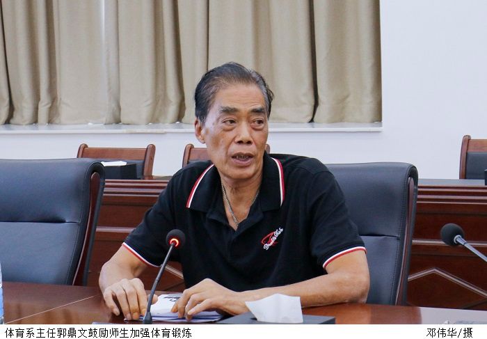 体育系主任郭鼎文对筹备工作进行补充强调,体育系是学校的体育职能部门,要大力宣传体育的重要性、发扬体育的拼搏精神,同时鼓励师生通过体育锻炼提高自身免疫力。