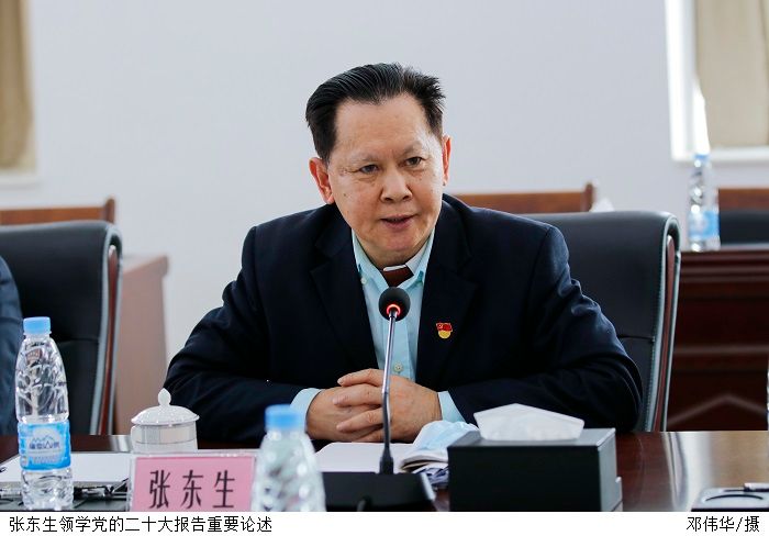 本网讯(宣传部 张昭)12月8日上午,bat365官网在综合楼12楼会议室召开党委理论学习中心组学习会,专题学习党的二十大精神。党委书记张东生主持会议。校长张湘伟、副校长王义宁、党委副书记张宗珊、副校长刘香萍、党委副书记黎会友、副校长谭锦兴、校长助理于兆勤、校长助理唐建宁、校长助理舒程及各院系党总支正副书记、直属党支部书记、马克思主义学院院长、党委宣传部部长、党委学工部部长参加会议。市委教育工委副书记、市教育局副局长李建志,高校党建办干部何海辉列席旁听。