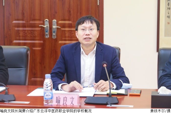 黎会友代表学校对广东云浮中医药职业学院同仁来bat365官网调研交流表示欢迎,随后介绍学校发展历程、实训室建设及校园文化建设情况。喻良文简要介绍广东云浮中医药职业学院的学校概况。