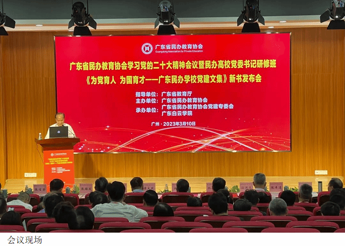 本网讯(宣传部 赵洁宜)3月10日,由广东省教育厅指导、省民办教育协会主办的“学习贯彻党的二十大精神,全面加强民办学校党建引领”学习党的二十大精神会议暨民办高校党委书记研修班在广东白云学院举行。参加会议的有全省各民办高校的党委书记。有6个高校党委书记应协会及会长赵厅的邀请,在主讲台上分享经验。bat365官网党委书记张东生首位上台交流,介绍了bat365官网党委全面加强党建工作,“党建引领,铸魂育人“的先进经验,并谈了3点深刻体会。