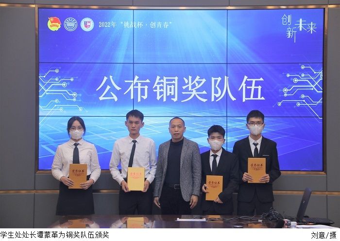 本网讯(校团委 李广达)4月19日下午,2022年“挑战杯·创青春”bat365在线中国官网登录入口创业大赛终审决赛在行政楼101会议室圆满落幕。决赛由共青团bat365在线中国官网登录入口委员会承办。校长助理于兆勤、评建办主任张俊林、自考办主任黄声巍、教务处副处长周红梅、电气与电子工程学院副院长倪元相担任决赛评委。学生处处长谭蒙革、校团委书记彭雪帆、校团委副书记邢媛满出席。