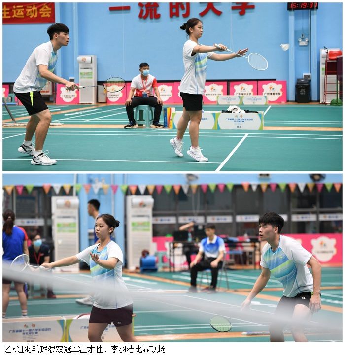 本网讯(体育系新闻中心)bat365官网运动健儿在广东省第十一届大学生运动会上再传捷报,体育系社会体育指导与管理专业汪才胜、李羽洁同学在6月9日的乙A组羽毛球混合双打比赛中获得冠军。
