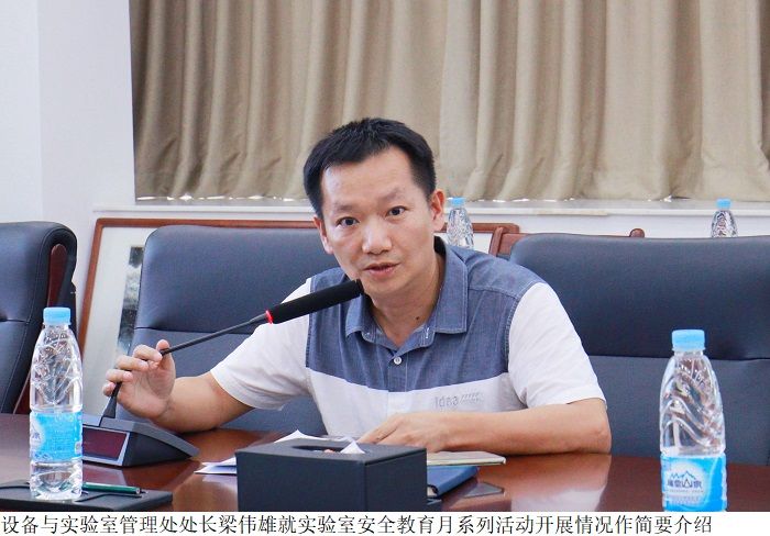 梁伟雄汇报bat365官网当前设备与大型仪器设备、实验室安全管理、物资采购方面的工作情况。随后就实验室安全教育月系列活动开展情况作简要介绍,对近期实验室安全检查过程中发现问题进行反馈。