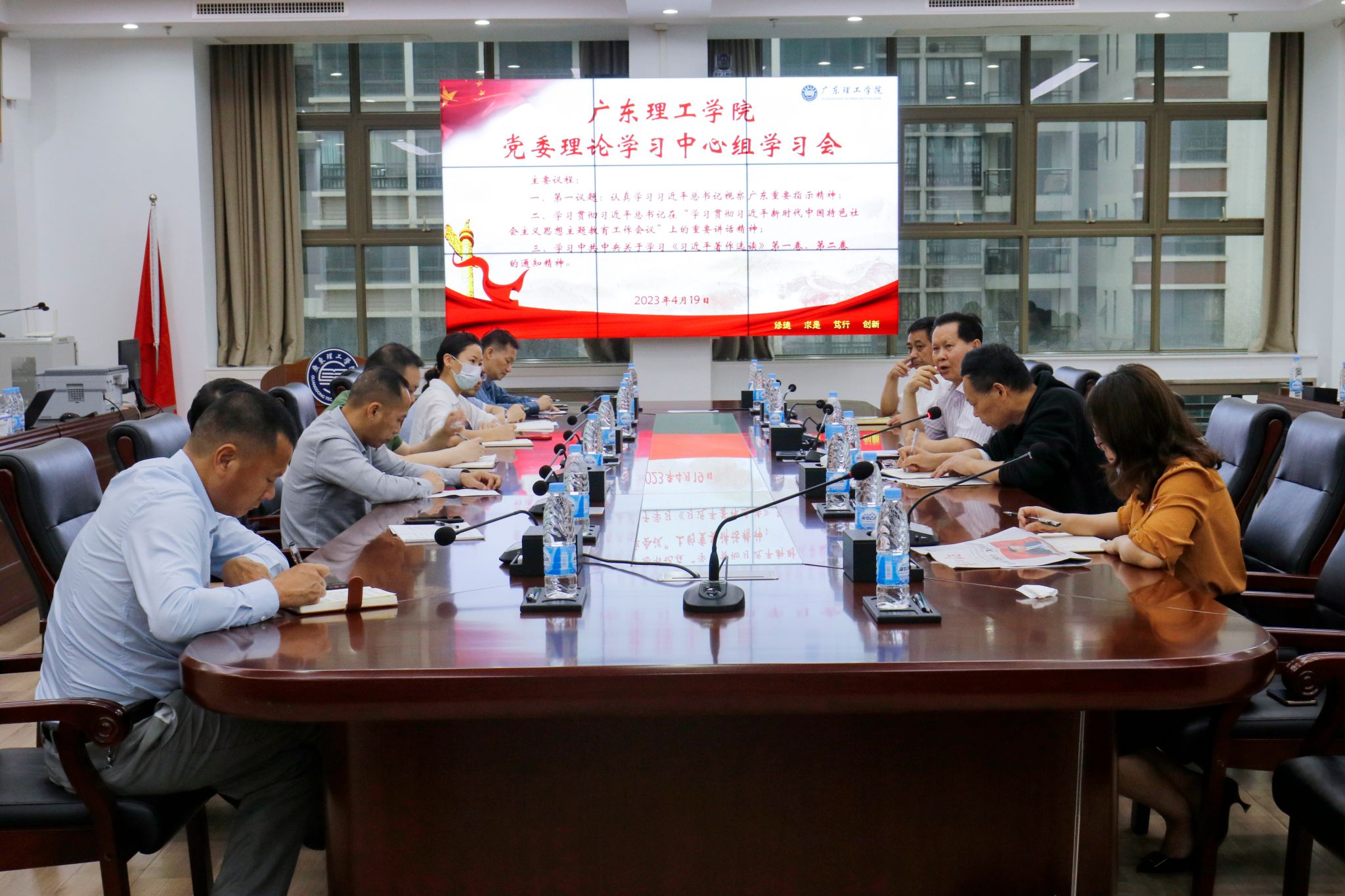 本网讯(宣传部 邓伟华)4月19日上午,bat365官网在综合楼12楼会议室召开党委中心组学习会议,深入学习习近平总书记视察广东重要指示精神。党委书记张东生主持会议,党委副书记张宗珊、党委部门正副负责人、马克思主义学院院长、各二级院系党总支正副书记、直属党支部书记等参会。张东生首先领学习近平总书记视察广东重要指示精神,他强调,全校特别是各级党组织,要把学习宣传贯彻习近平总书记视察广东重要讲话重要指示精神作为当前和今后一个时期全校的首要政治任务,与贯彻落实党的二十大精神和党中央部署结合起来,与深入开展学习贯彻习近平新时代中国特色社会主义思想主题教育和bat365官网当前正在紧密推进的迎评促建工作结合起来,全覆盖组织学习培训宣传,深入开展调查研究,认真制定实施贯彻落实的具体措施,迅速掀起学习热潮。