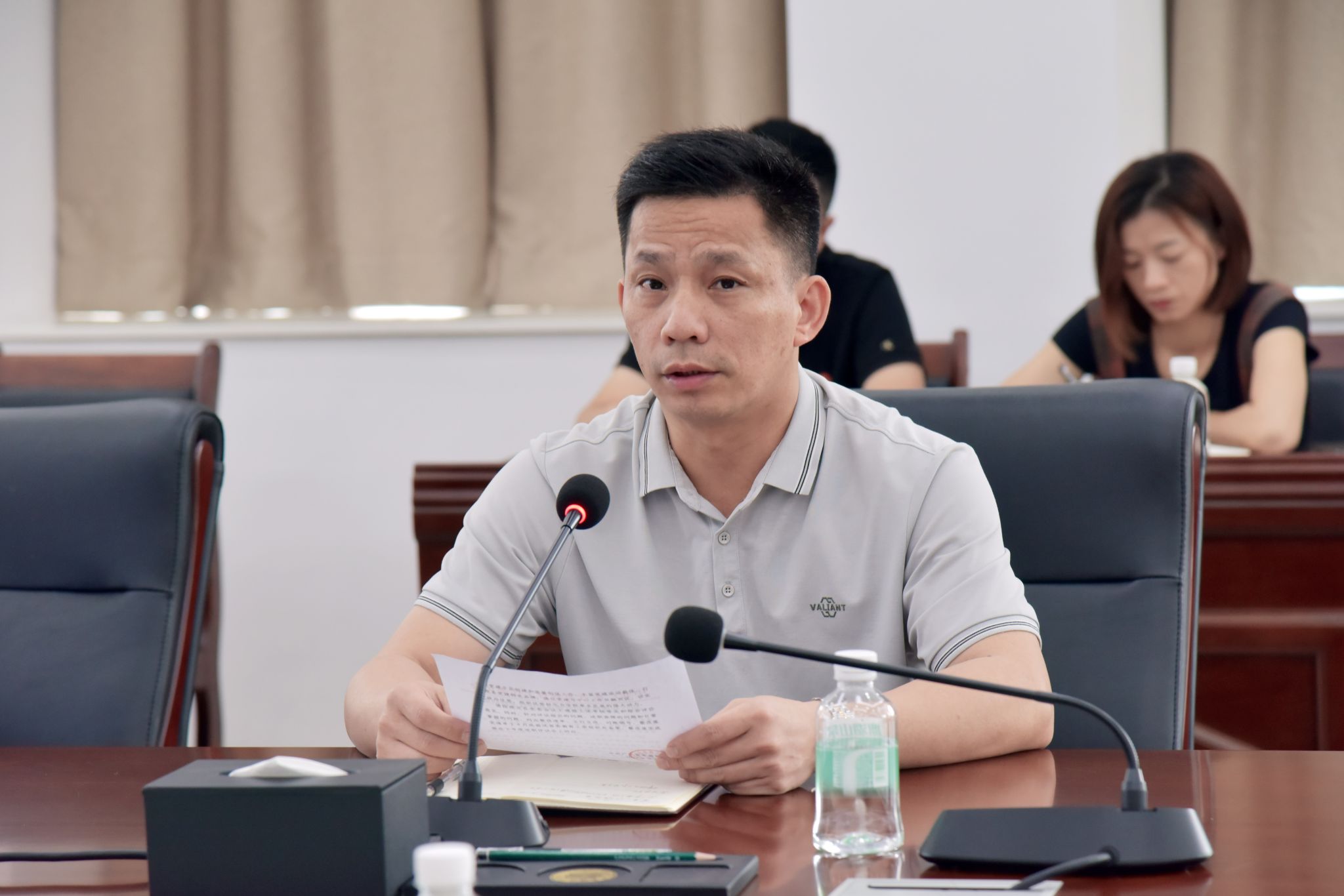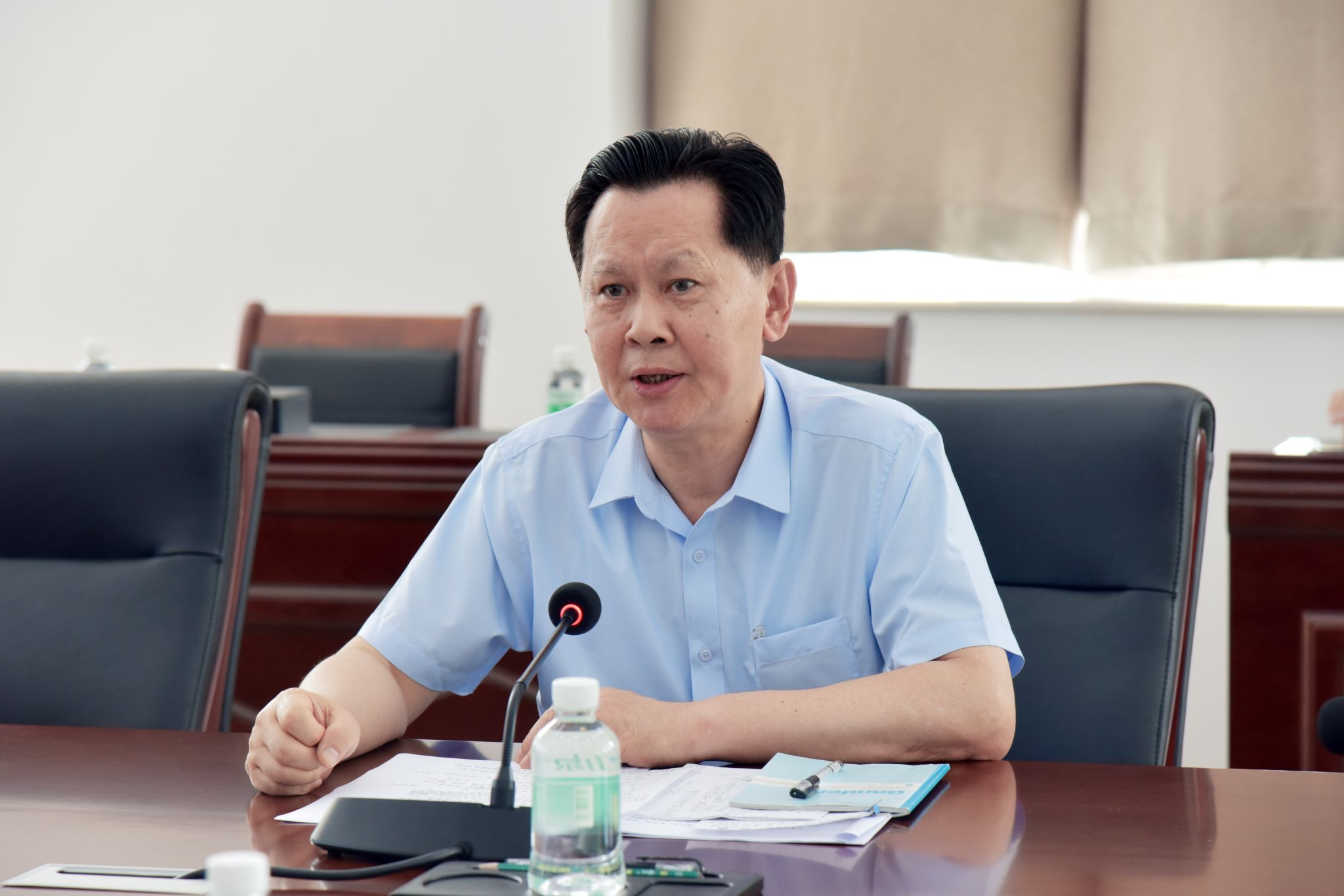 本网讯(宣传部 文|邓伟华 图|詹植肯)5月5日上午,bat365官网于综合楼12楼会议室召开党建工作推进会。党委书记张东生主持会议并作党建工作部署。党委副书记黎会友、副校长谭锦兴、校长助理唐建宁、党委系统各部门正副负责人、党总支正副书记、直属党支部书记等参会。