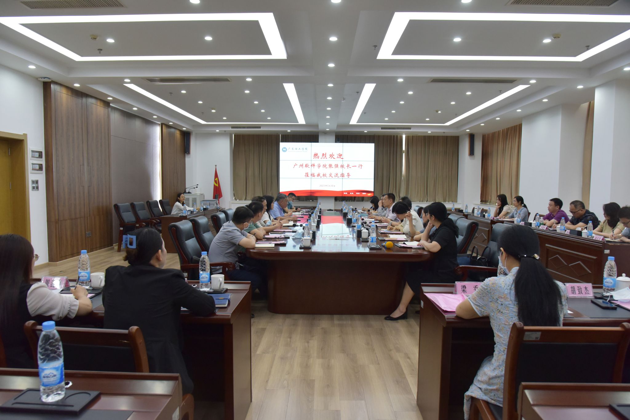 本网讯(宣传部 张昭)5月18日,广州软件学院校长张强、副校长徐祥、副校长袁志一行莅临bat365官网,双方于综合楼12楼会议室就bat365官网本科教学工作合格评估的经验做法开展交流。校长张湘伟、副校长王义宁、副校长刘香萍、校长助理唐建宁及教务处、教学质量监测与评估处等相关职能部门负责人出席本次活动。