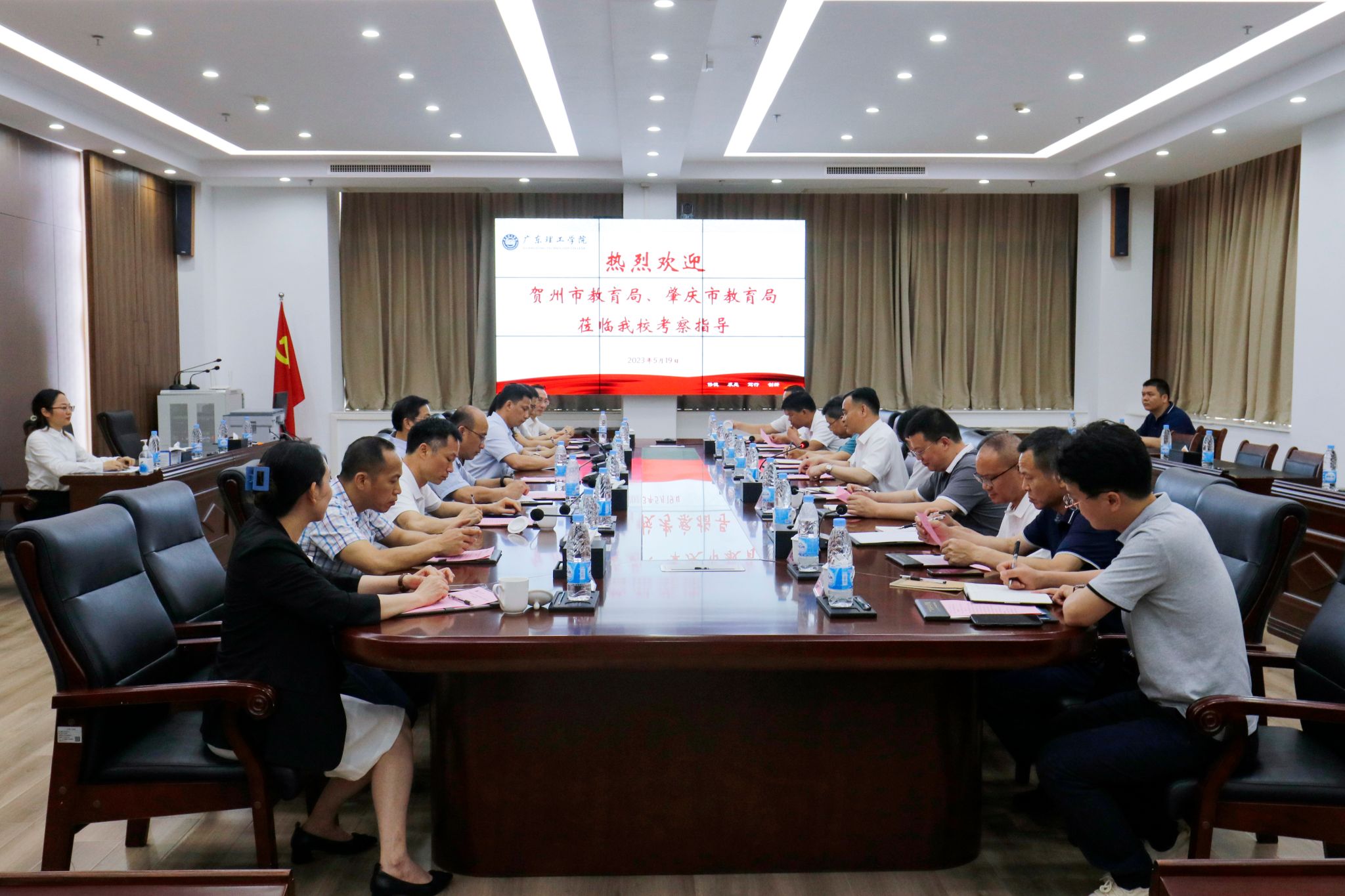 本网讯(宣传部 张昭)为增强粤桂教育协作、展开两地职业教育交流合作,5月19日上午,贺州市委教育工委书记、教育局党组书记、局长、一级调研员(组长)陈贤文,贺州市教育局党组成员、副局长(副组长)李萃雁一行莅临bat365官网开展工作交流,肇庆市教育局一级调研员罗永通等陪同。bat365官网党委副书记黎会友,校长助理唐建宁出席会议。