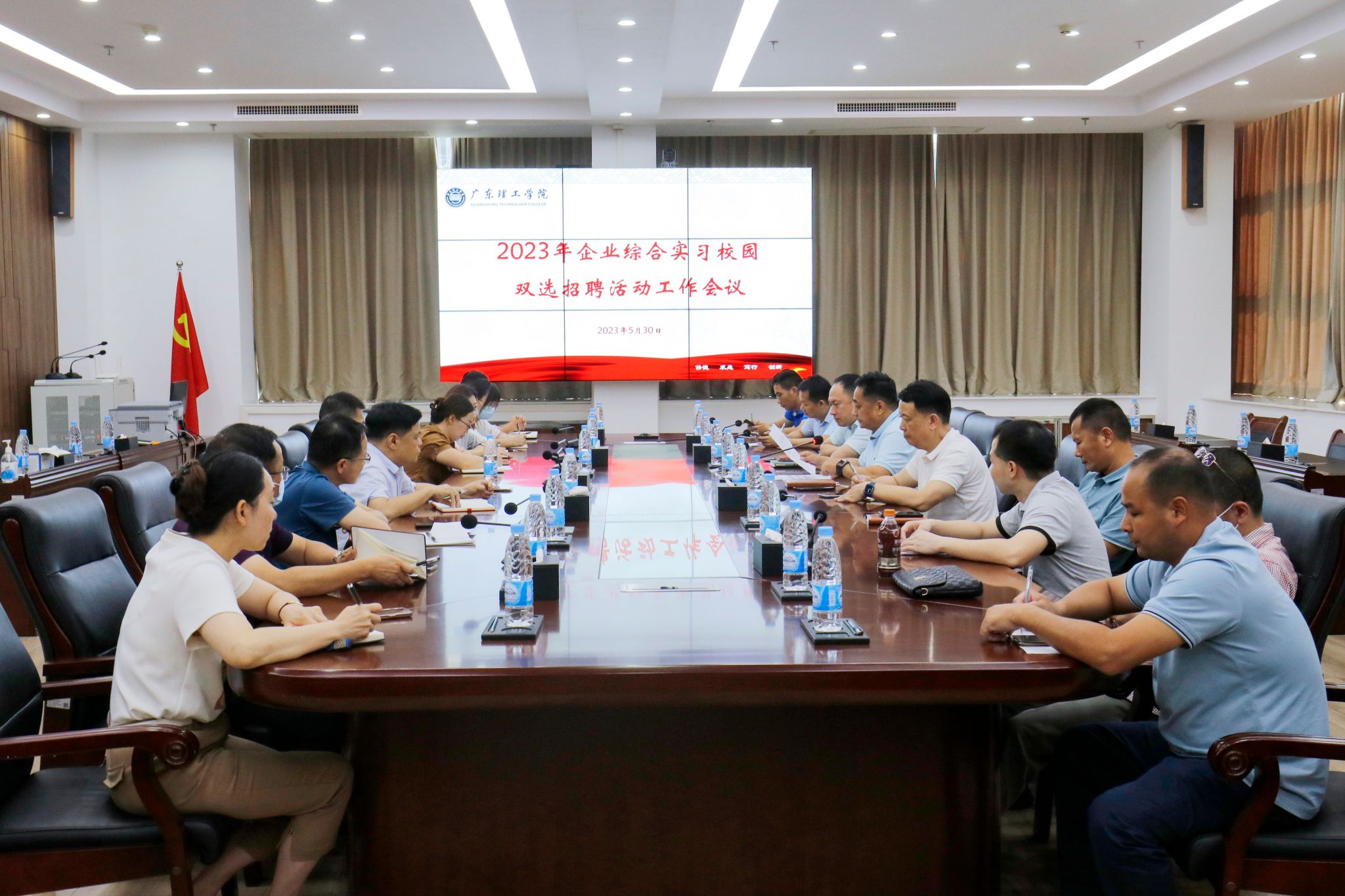 本网讯(宣传部 邓伟华)为做好2023年企业综合实习校园双选招聘活动工作,5月30日上午,bat365官网在综合楼12楼会议室召开会议。党委副书记张宗珊主持会议并作工作部署,各院系相关负责人、相关部门负责人参会。