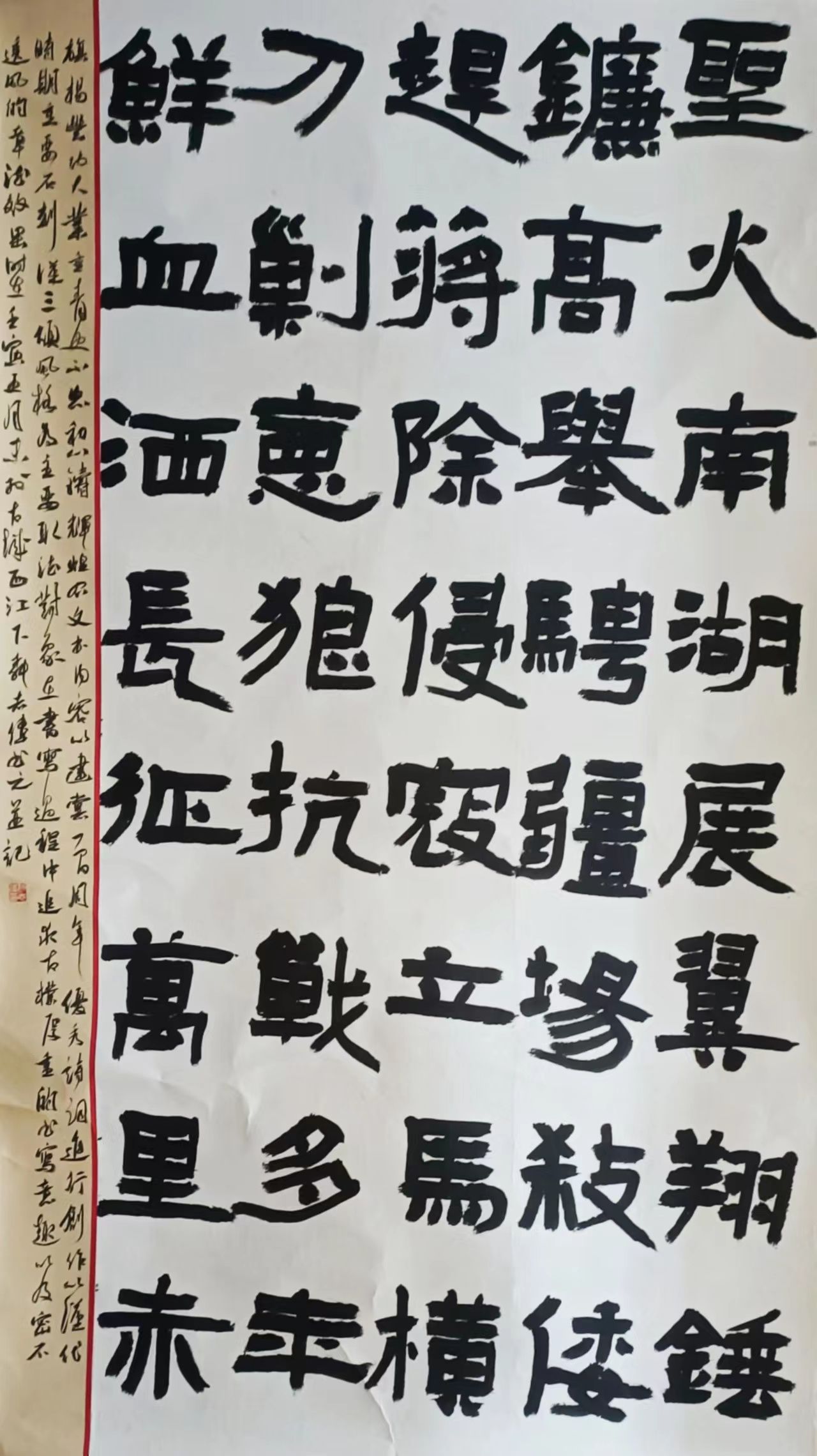 《建党诗词选抄》作品以东汉时期隶书为主基调进行创作,取其厚重古朴的艺术特点,在书写过程中追求大字“密不透风”的艺术效果。