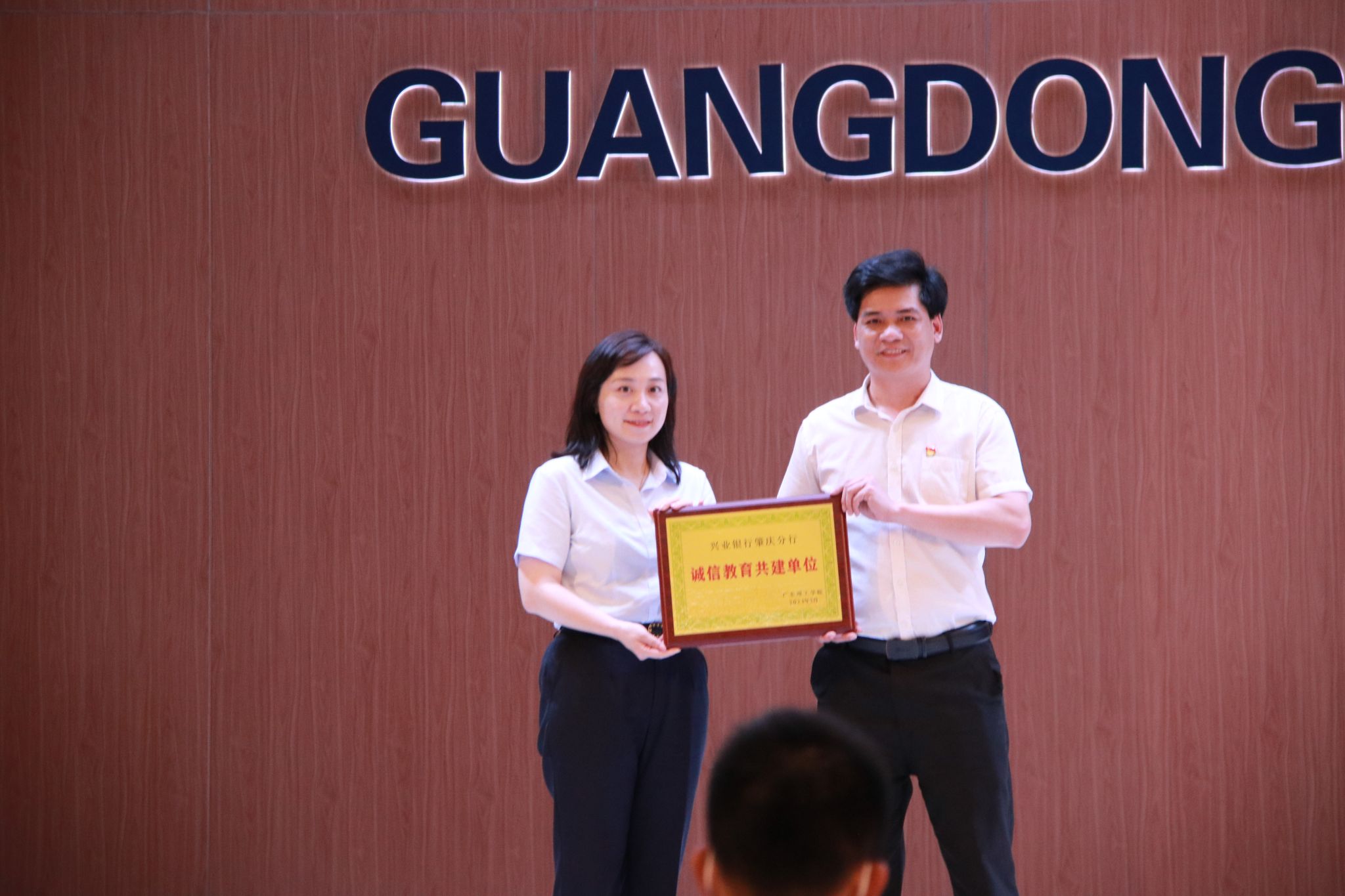 bat365官网向兴业银行肇庆分行颁发“诚信教育共建单位”牌匾