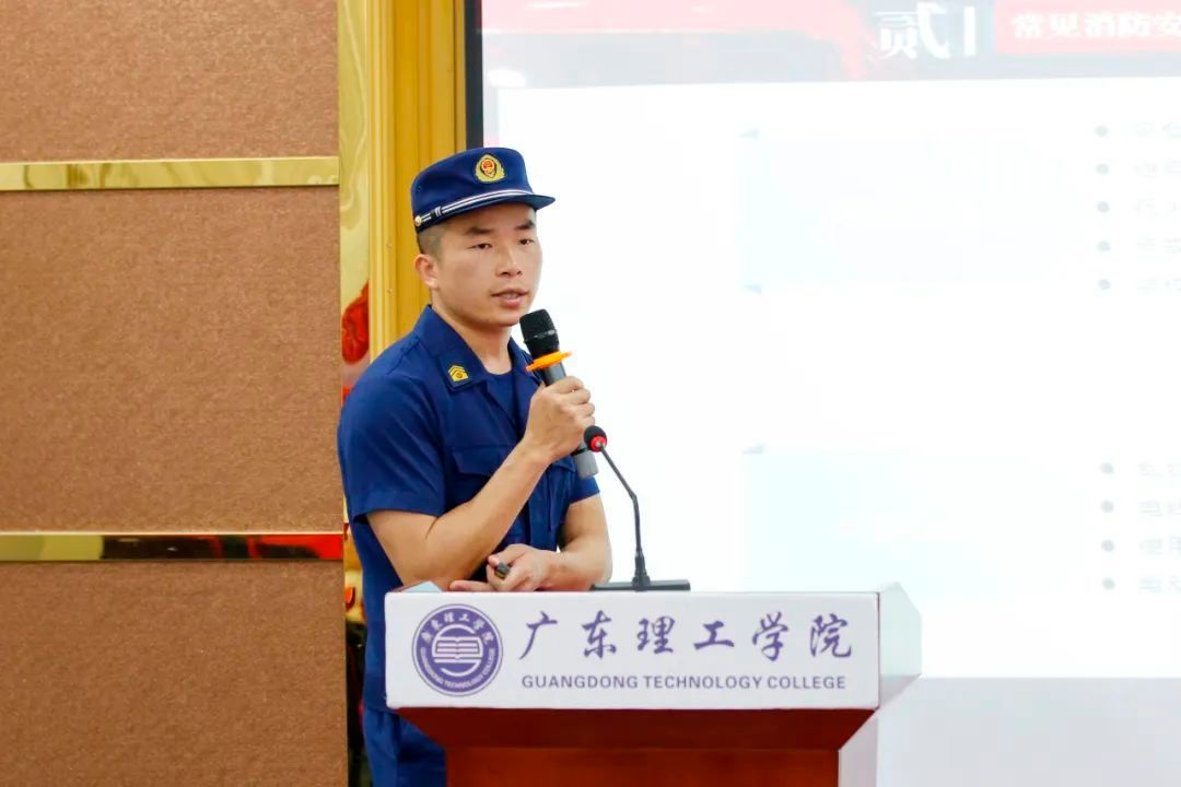 本网讯(宣传部 邓伟华)为进一步深入学习贯彻党的二十大精神和习近平总书记关于安全生产重要论述精神,增强师生消防安全意识,清除消防安全隐患,确保全校师生生命及财产安全,6月15日上午9:30,bat365官网联合高要区消防救援大队在振华楼42101组织开展消防安全知识培训及实验室消防演练活动。校长助理于兆勤出席并致辞。高要区消防救援大队消防员李润生主讲消防安全知识。活动由保卫处处长曾荫初主持。