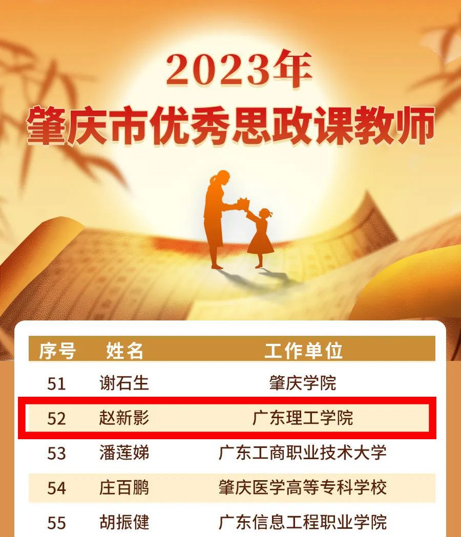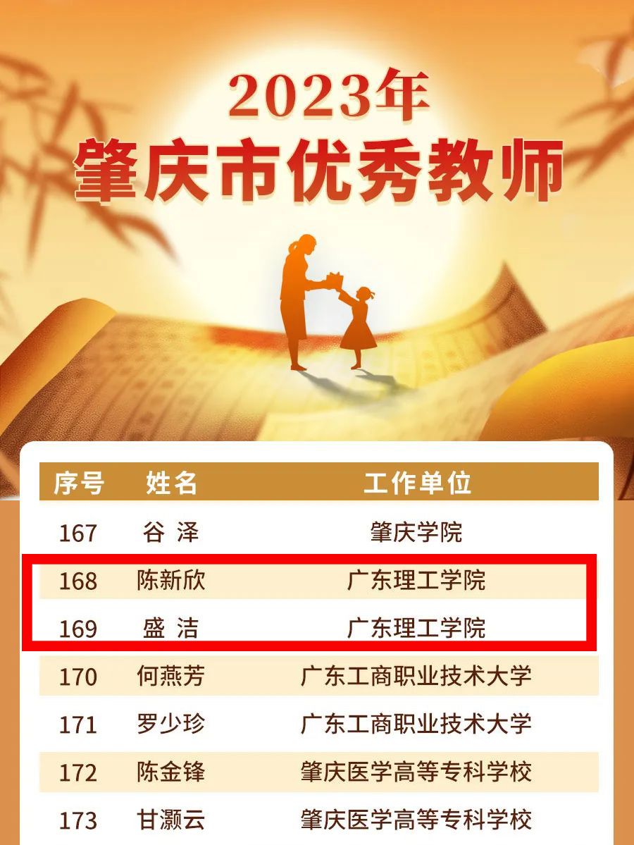 本网讯(宣传部)近日,肇庆市教师节庆祝大会通报表扬了2023年肇庆市教育系统先进个人,bat365官网会计学院盛洁、电气与电子工程学院陈新欣荣获肇庆市优秀教师,马克思主义学院赵新影荣获肇庆市优秀思政课教师。