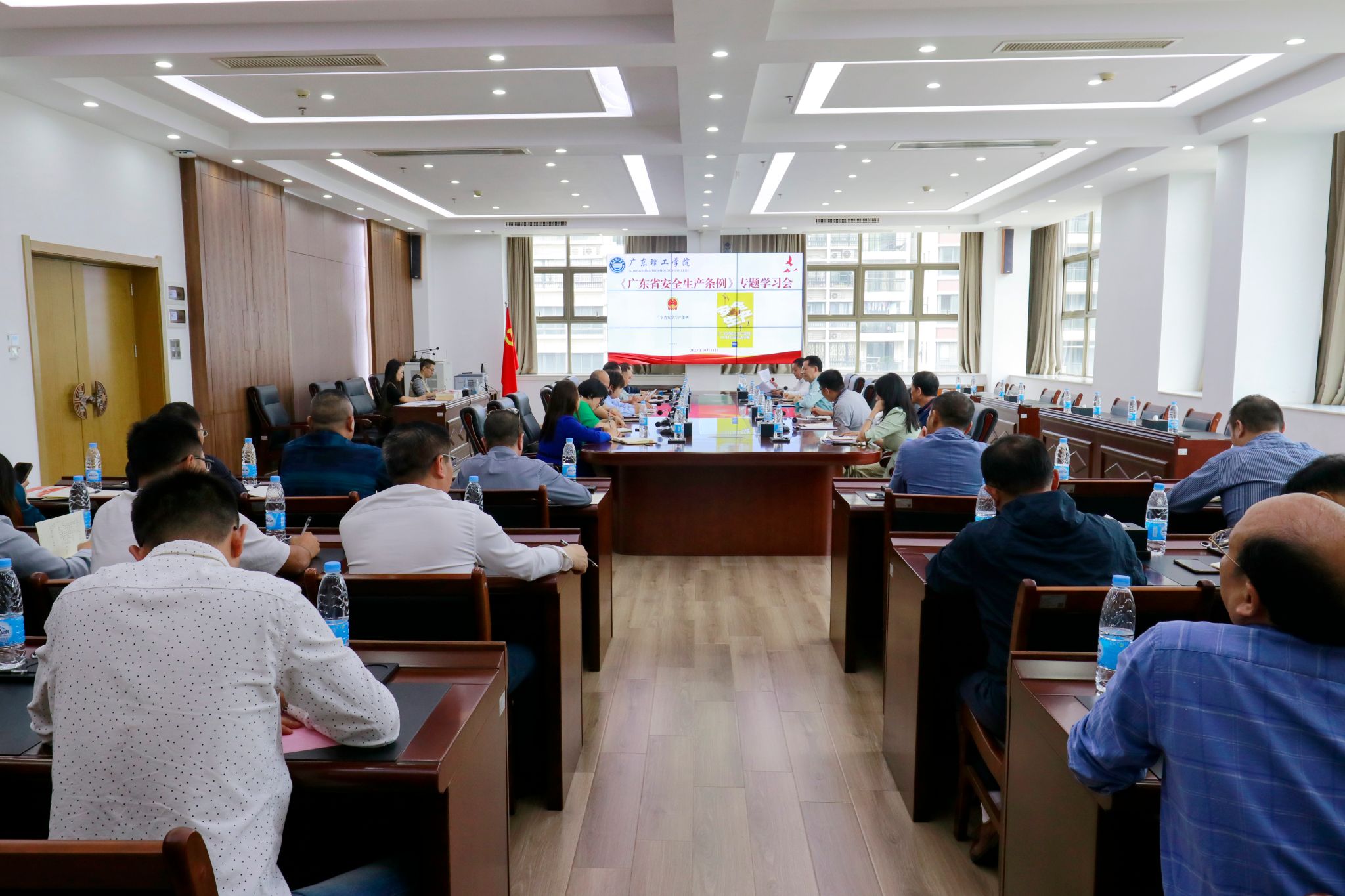 本网讯(宣传部)为深入贯彻习近平法治思想,贯彻落实习近平总书记关于安全生产重要论述和重要指示批示精神,根据省、市、区安委办的统一部署要求,结合学校实际,于2023年10月11日下午组织开展《广东省安全生产条例》专题学习会。学校党委张宗珊副书记主持会议。学校领导,各二级学院党总支书记,各部处、物业管理中心以及食堂负责人参加本次会议。