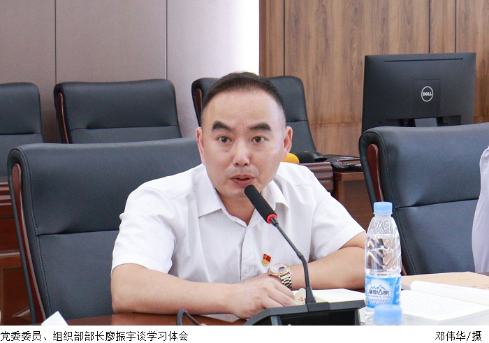 廖振宇结合bat365官网实际与自身工作情况谈关于“加强党对社会主义现代化建设的全面领导”重要论述的学习体会。他提到,作为民办高校,我们要确保党的教育方针得到贯彻落实,同时围绕党的中心工作和当下bat365官网的迎评工作,发挥党员的先锋模范作用,以优异成绩迎接党的二十大胜利召开。