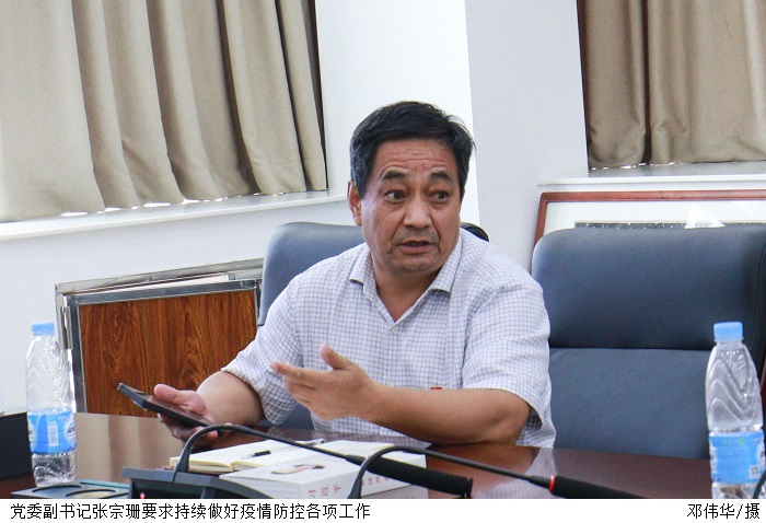 党委副书记张宗珊强调,要深刻认识当前疫情严峻形势,坚决消除侥幸心理和懈怠思想,要求师生返校及时报备并完成“三天两检”,持续做好疫情防控各项工作。