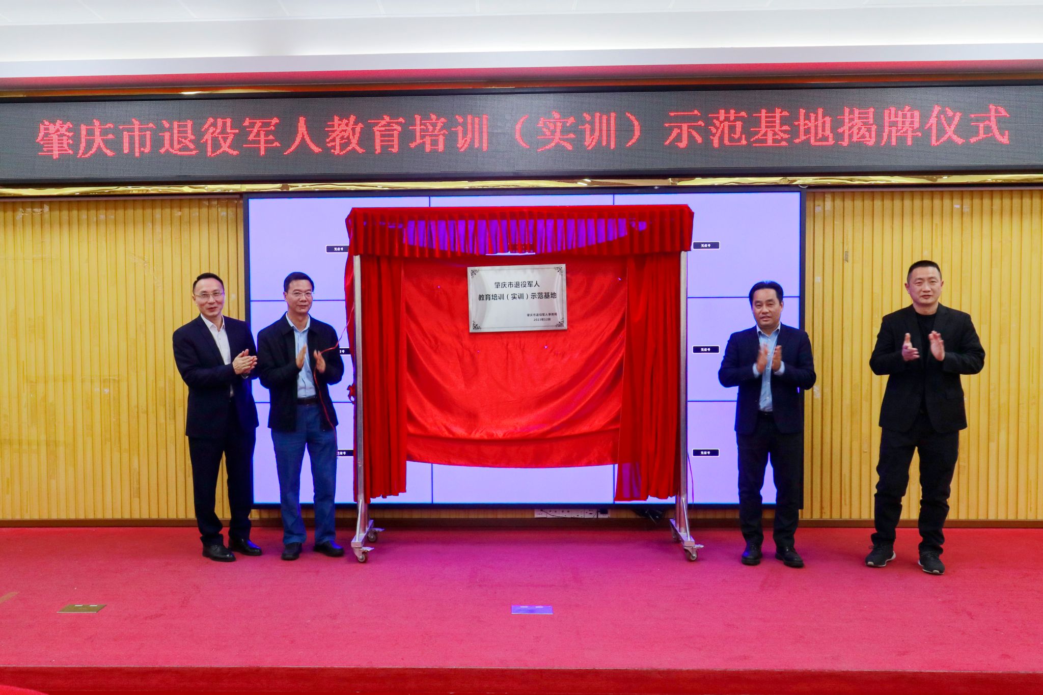 本网讯(宣传部)1月15日下午,肇庆市退役军人教育培训(实训)示范基地在bat365官网正式揭牌成立,旨在为学校退役军人提供更加优质的教育培训服务,进一步完善多层次、多样化的教育培训体系。市退役军人事务局党组书记、局长李建文,市退役军人事务局党组成员、副局长何衍军,学校副校长谭锦兴,学校退役军人教育培训学院院长叶涌等出席揭牌仪式并为基地揭牌。